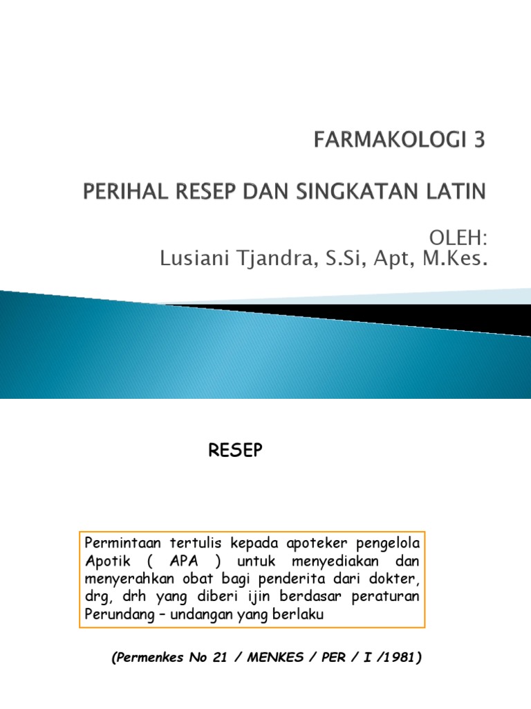 = sehari 3 x1 sendok makan. Siapa singkatan yang digunakan dalam resep? Daftar singkatan istilah bahasa latin resep obat ilmu farmasi : A.u.i ad usum internum untuk pemakaian dalam.