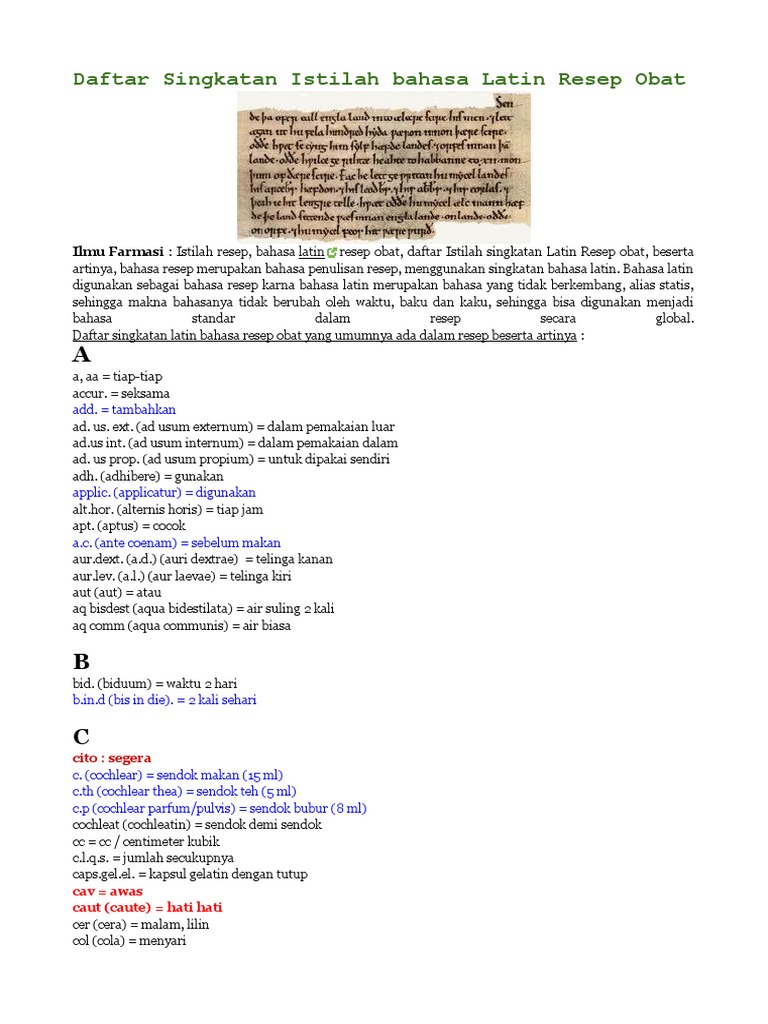 Namun demikian ada sebagian yang sangat sering digunakan. Namun demikian ada sebagian yang sangat sering digunakan. Dec 04, 2019 · alasan bahasa latin digunakan dalam penulisan resep: Bahasa latin merupakan bahasa international dalam dunia kedokteran dan kefarmasian
